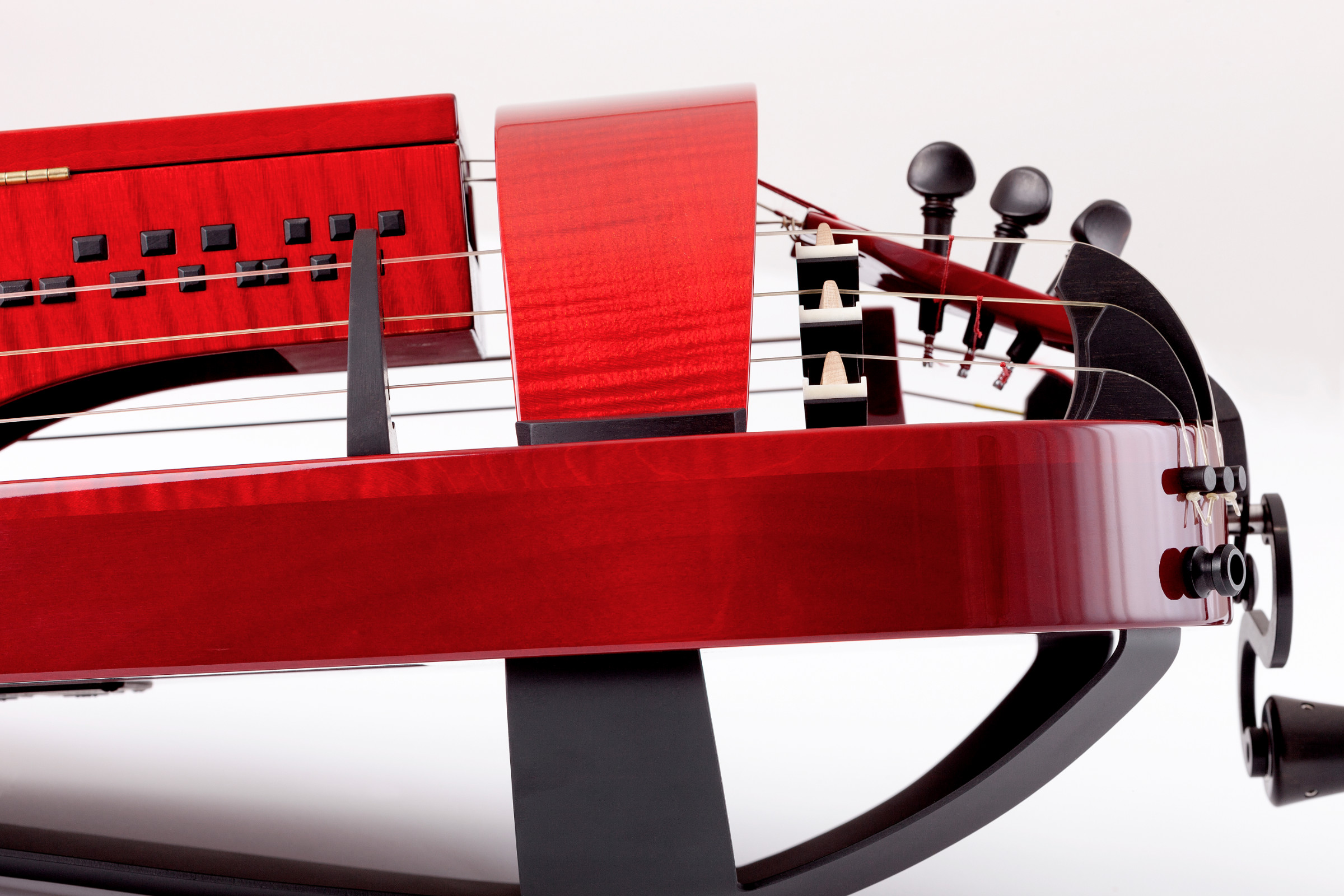 Die komfortable Klangregulierung durch den höhenverstellbaren Melodiesteg und dem einstellbaren Schnarrsteg werden durch Lautstärkenregler für jede Saitengruppe ergänzt.