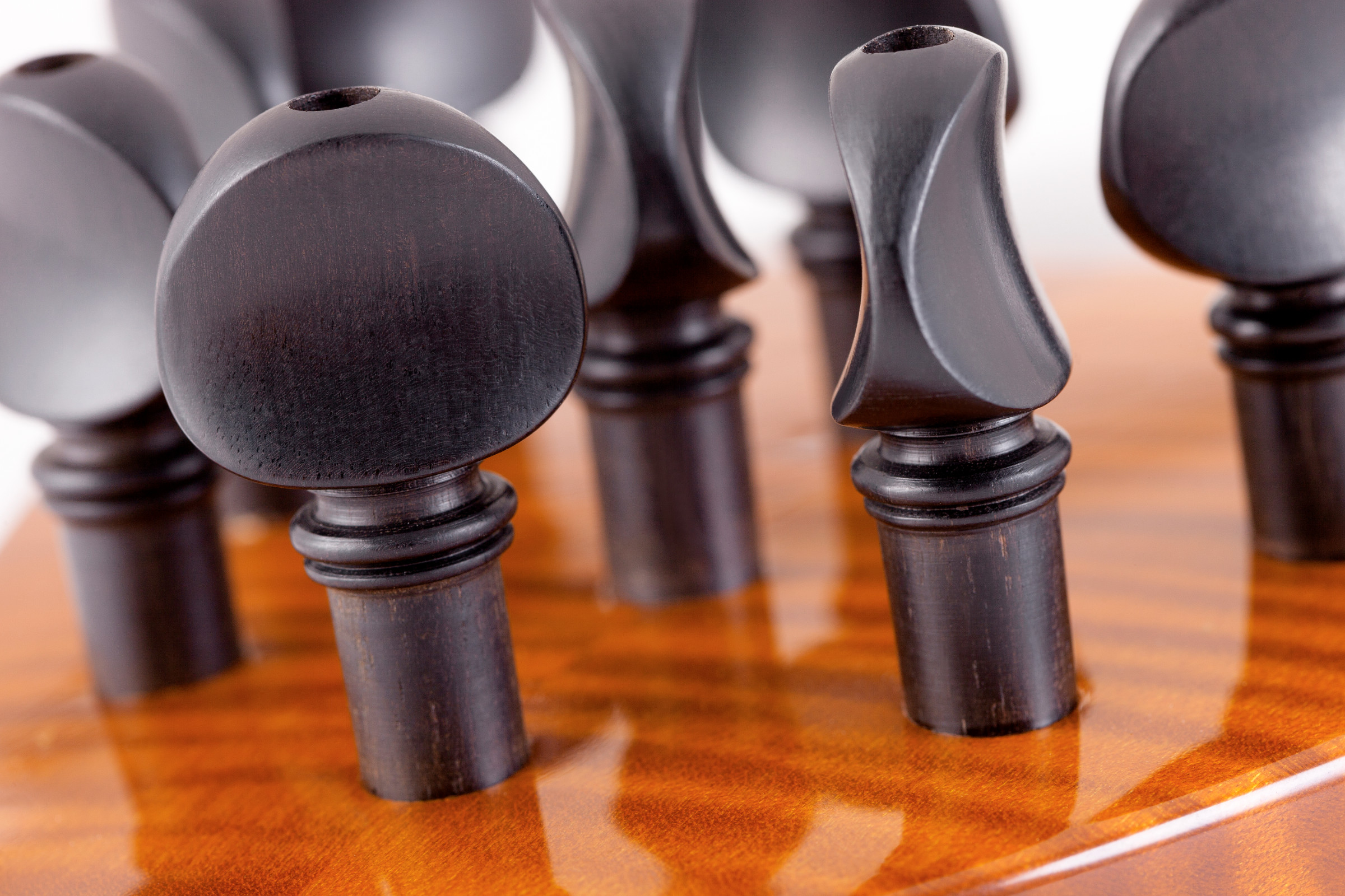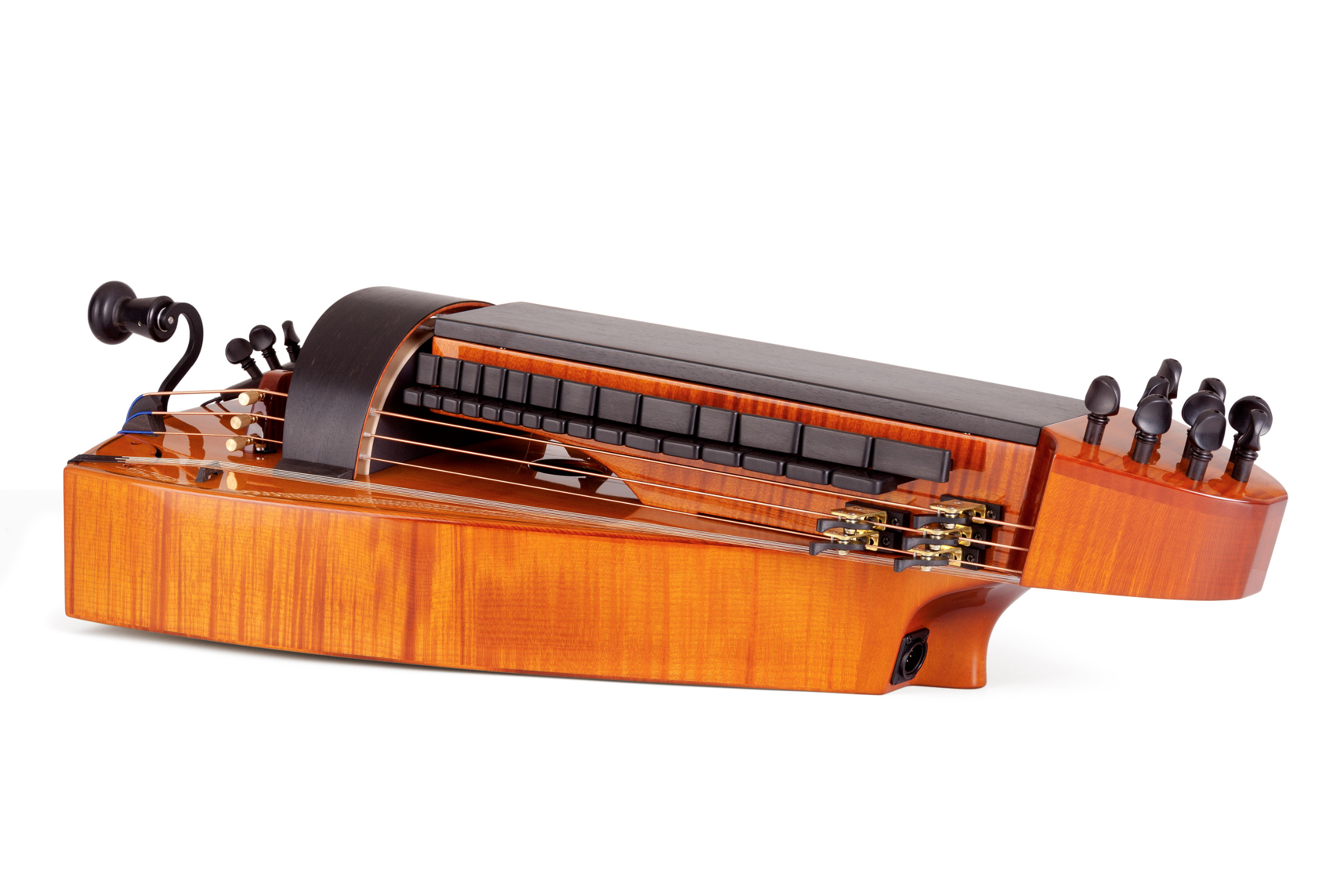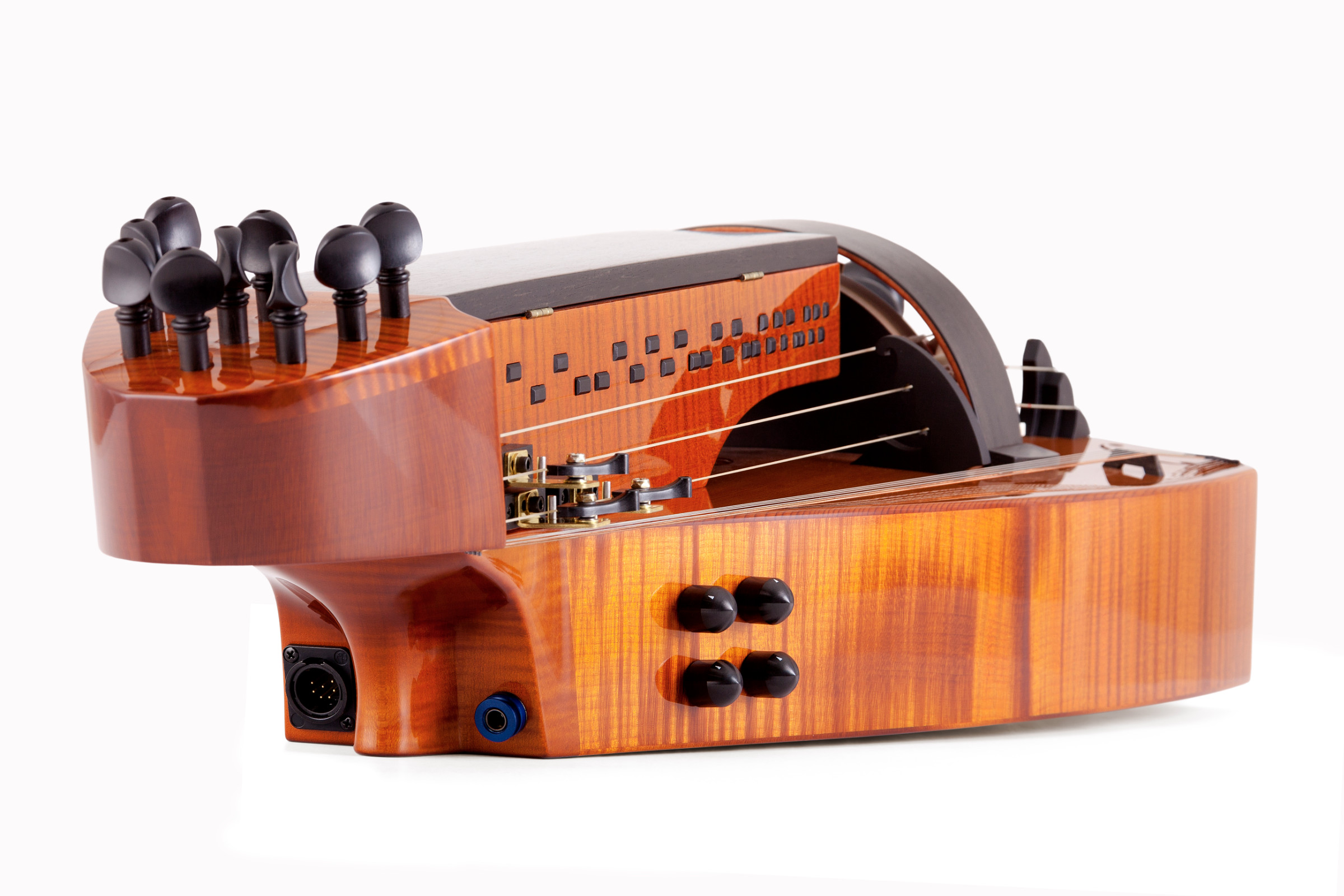 Historisch anmutende Akzente, wie die versteckten Mechaniken, der formschöne Kopf des Instruments und eine von Hand mit hochwertigem Öllack lackierte Oberfläche, sorgen für einen unvergleichlichen Auftritt.